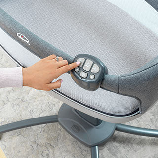 Swivel wheels, mesh side panels and a range of height adjustment allow baby to be as close to you as possible while sleeping in their own comfortable space in the bedside bassinet. A soft, quilted mattress along with soothing melodies and vibrations provide a restful, cozy environment.
