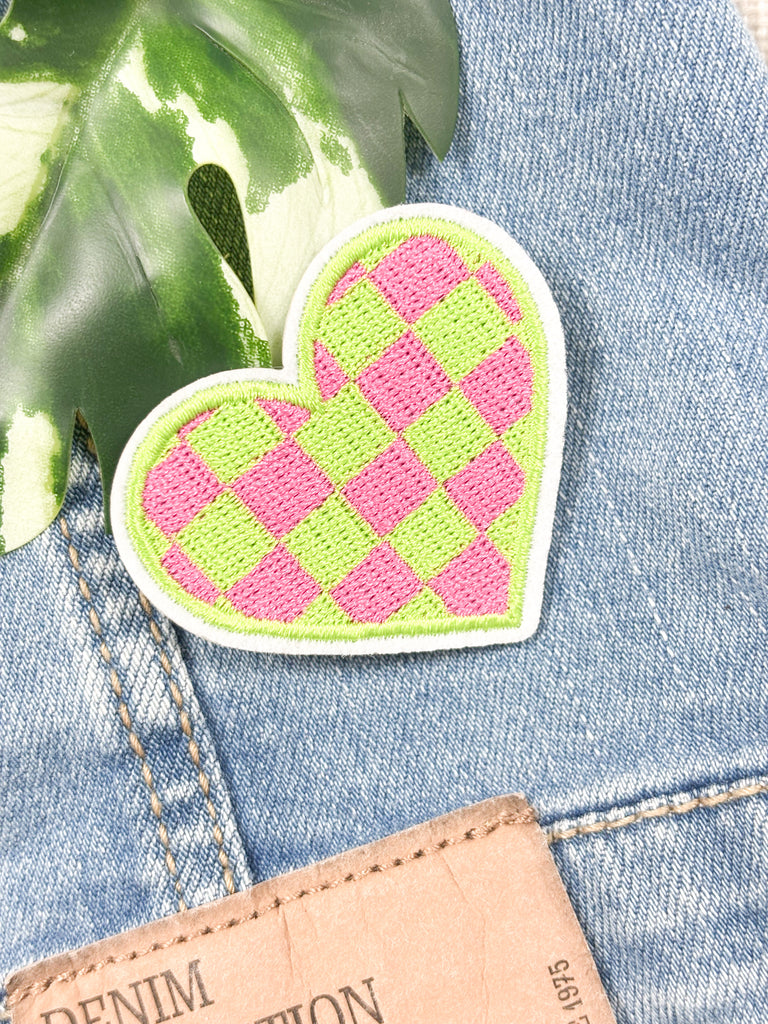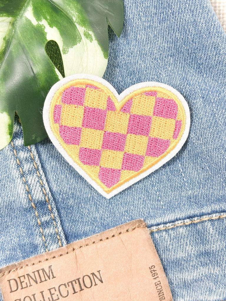Iron on Badge - Checkered Heart