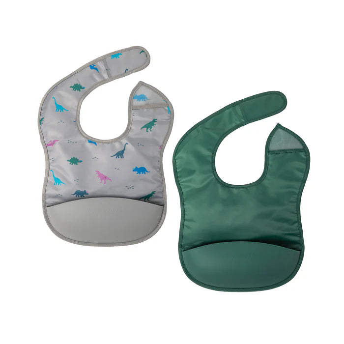Silicone Pocket Bib 2pk - Dinosaur & Olive