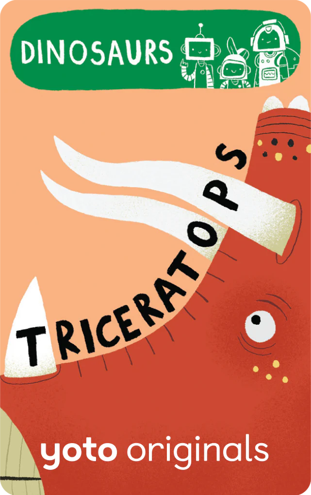 Yoto says: Head back in time with the BrainBots to explore the amazing world of Dinosaurs.